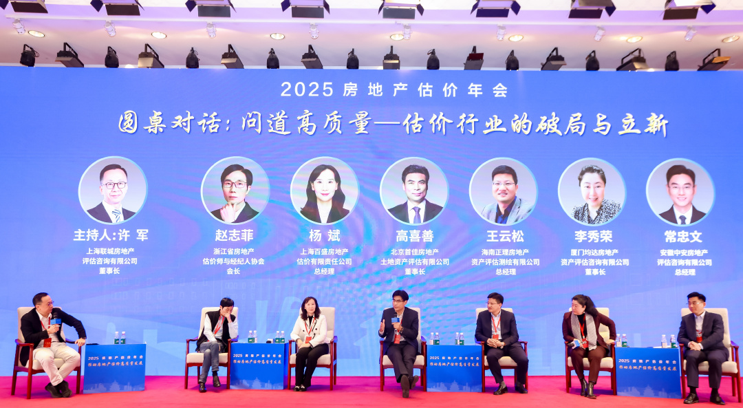 浙江省房地產估價師與經紀人協會會長趙志菲、上海百盛房地產估價有限責任公司總經理楊斌、北京首佳房地產土地資產評估有限公司董事長高喜善、海南正理房地產資產評估測繪有限公司總經理王云松、廈門均達房地產資產評估咨詢有限公司董事長李秀榮、安徽中安房地產評估咨詢有限公司總經理常忠文等嘉賓,圍繞“問道高質量——估價行業的破局與立新”這一主題進行了圓桌對話。嘉賓認為,房地產估價高質量發展,核心是夯實估價質量、提升優質估價服務,同時要注重企業品牌建設和估價技術提升。全行業要凝聚共識、團結協作,精準破解高質量發展中的難題,行業組織聚焦惡性壓價競爭等突出問題,推動形成治理合力,營造良好行業發展生態,同時不斷建立健全行業標準規范體系、傳播行業正向價值,引導行業規范有序發展。估價機構要發揮自身優勢,補齊高質量發展短板,通過優化業務結構、強化內部治理、推進數字化轉型、吸納培養專業人才、充分運用技術賦能等舉措,增強發展韌性和核心競爭力,實現自身轉型升級,進而推動房地產估價實現高質量發展。